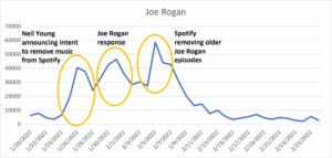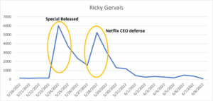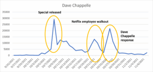 We analyzed four controversies that we felt were in a similar vein: Dave Chappelle’s Netflix special, Joe Rogan/Neil Young Spotify, Will Smith’s Oscar slap, and Ricky Gervais’ Netflix special.