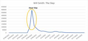 The adage goes, “There is no such thing as bad publicity.” Over the past eight months, we have had plenty of celebrities who have tested this theory with a range of controversies. However, these controversies often seem to disappear as quickly as they arrived. While we were in a meeting talking over Will Smith’s Oscar slap, we started discussing how long we felt the attention would be on Will Smith.